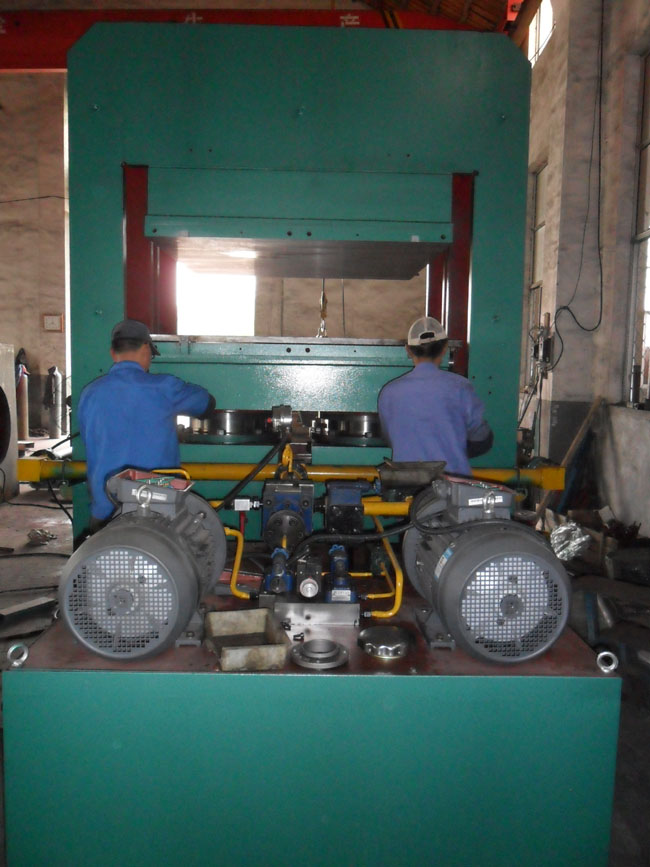 適用于硫化各種橡膠塑料模型制品和非模型制品。平板硫化機柱塞在工作液壓力作用下上升,柱塞下降(即熱板開啟)靠熱板、平臺及柱塞自重,驅使工作液流回儲油箱,達到下降(即開啟)的目的。硫化機的油缸中放置有用耐油橡膠制成的密封圈,在硫化機工作中起密封作用。硫化機的組合油泵是本機工作的動力源,它供給具有一定壓力的工作液。硫化機工作液經控制閥進入油缸,將操縱手柄撥到不同的位置,平板硫化機的柱塞即可上升或下降。