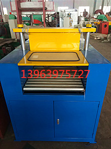 臺式切膠機前后配膠料輸送輥道,操作員將膠料放在前輥道,就可挺松將膠料送達(dá)切刀處,并且切刀處離輥道較遠(yuǎn);